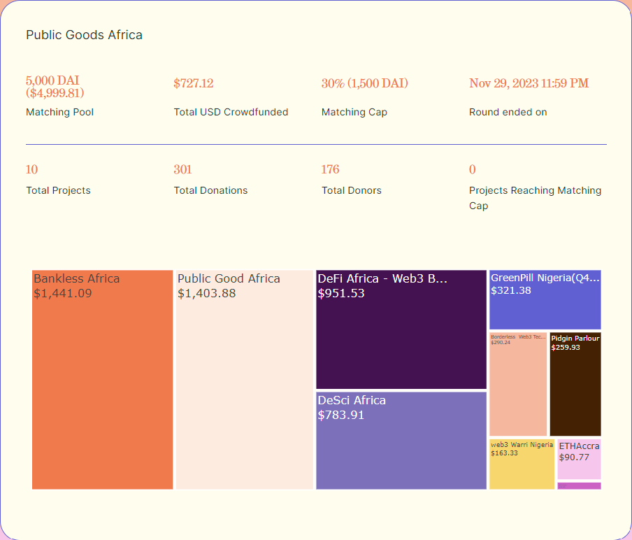 Expressing deep appreciation for all participants(Grantees, donors, funders, educators and the general Public Good audience). We view this round not just as a milestone but as foundations for a future where Web3 technology powered by Public Good Funding catalyzes social and economic change where builders, educators, innovators and change-makers can sustainably be funded to build for positive impact in Africa & beyond. We are excited for the future.